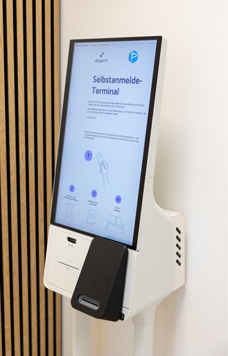 In unserer Praxis finden Sie ein Terminal, mit dem Sie sich selbst anmelden können. Ganz einfach mit Ihrer Krankenkasse-Karte. Das erspart Ihnen die Wartezeit bei der Anmeldung.